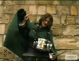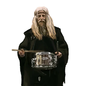 视频中59岁的人虽然只敲了一下鼓,出现时间不到一秒,却因为他独特的打扮和散发神秘气息的白发与胡须走红。因为他的打扮给人一种神圣的感觉,他被称为神(59岁)。