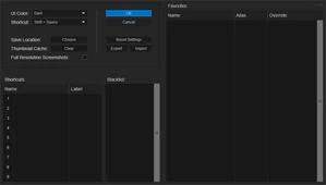 - 设置:可以更换设置页面的主题,更换调用的快捷键,添加常用效果列表。
