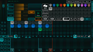 Rytmik studio具有相当多的乐器采样 - 步进音序器——用一个个“片段”组成音乐。每一个片段是四轨,可以同时放四个片段,共十六轨道。