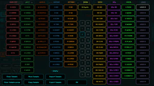 其布局:中间是编辑音符,音高,电平,以及其他效果的地方;左上是音色(采样)选择、PAN、OCT、乐器模式选择、音高、音量、以及踢踏节奏的设置;右侧有三个分栏,分别是乐器FX,总线FX以及乐器预设(可自定义);左下是编辑工具;正下方是Clip的长度控制(最长是4x单个Clip的长度)以及翻页器。